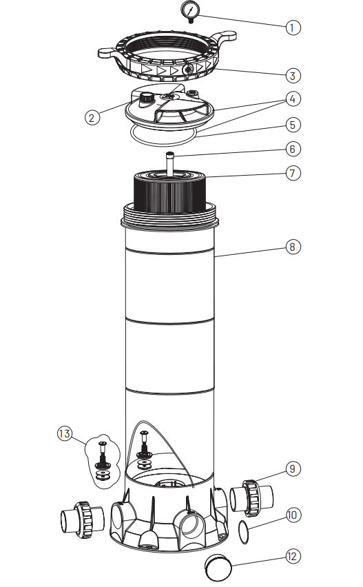 With a compact footprint and flexible installation options, the FreeFlo Cartridge Filter fits seamlessly into any pool setup. Its stainless steel, oil-filled pressure gauge provides accurate readings, while the internal bypass valve prevents excessive pressure build-up. The filter also includes 40mm and 50mm barrel unions and offers two inlet and two outlet ports for versatile plumbing configurations.