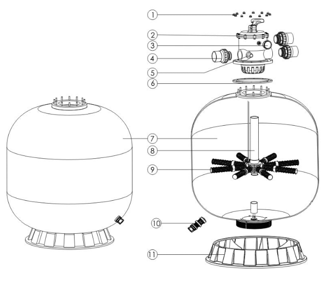 Discover the ultimate in durability and performance with the Emaux V800 Sand Filter. Engineered using advanced computerised fiberglass filament winding technology, this filter boasts exceptional mechanical strength and pressure resistance.