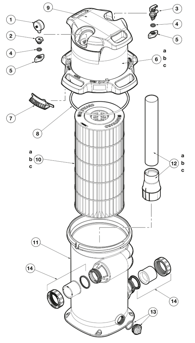 SwimClear is engineered for ease of use and quick servicing. The Easy-Lokâ„¢ ring design, ergonomic grip handles, and low body height allow for fast access, cleaning, and cartridge replacement. A recessed pressure gauge and manual air relief make servicing simple, while also allowing the head assembly to be placed upside down during maintenance to protect the internal seal from contamination.